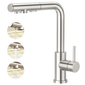 ก๊อกน้ำห้องครัว3ทางสแตนเลส304พร้อมเครื่องกรองน้ำ RO ปราศจากตะกั่ว